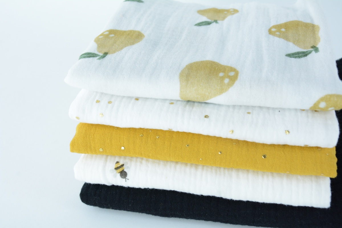 Zestaw 5szt. muślinów bawełnianych widocznych na zdjęciu.