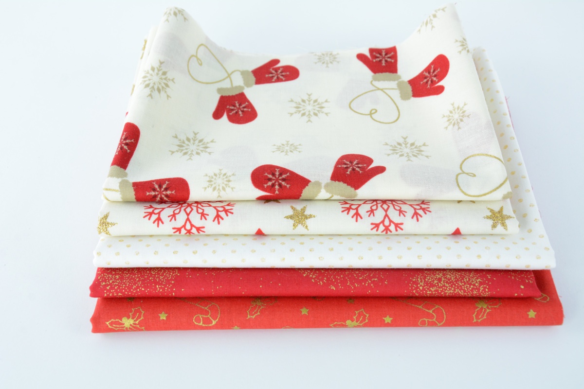 Zestaw 5 sztuk tkanin/dzianin widocznych na zdjęciu.