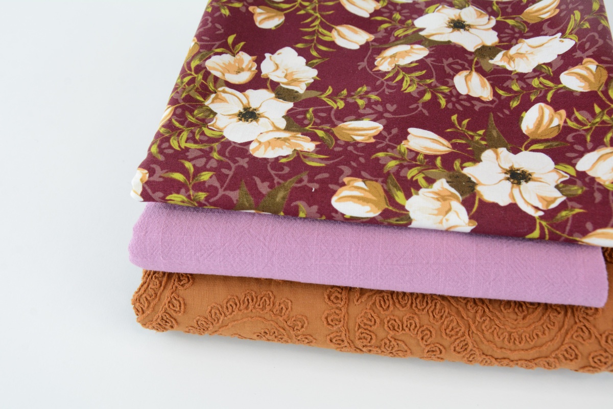 Zestaw 3 sztuk tkanin bawełnianych widocznych na zdjęciu.
