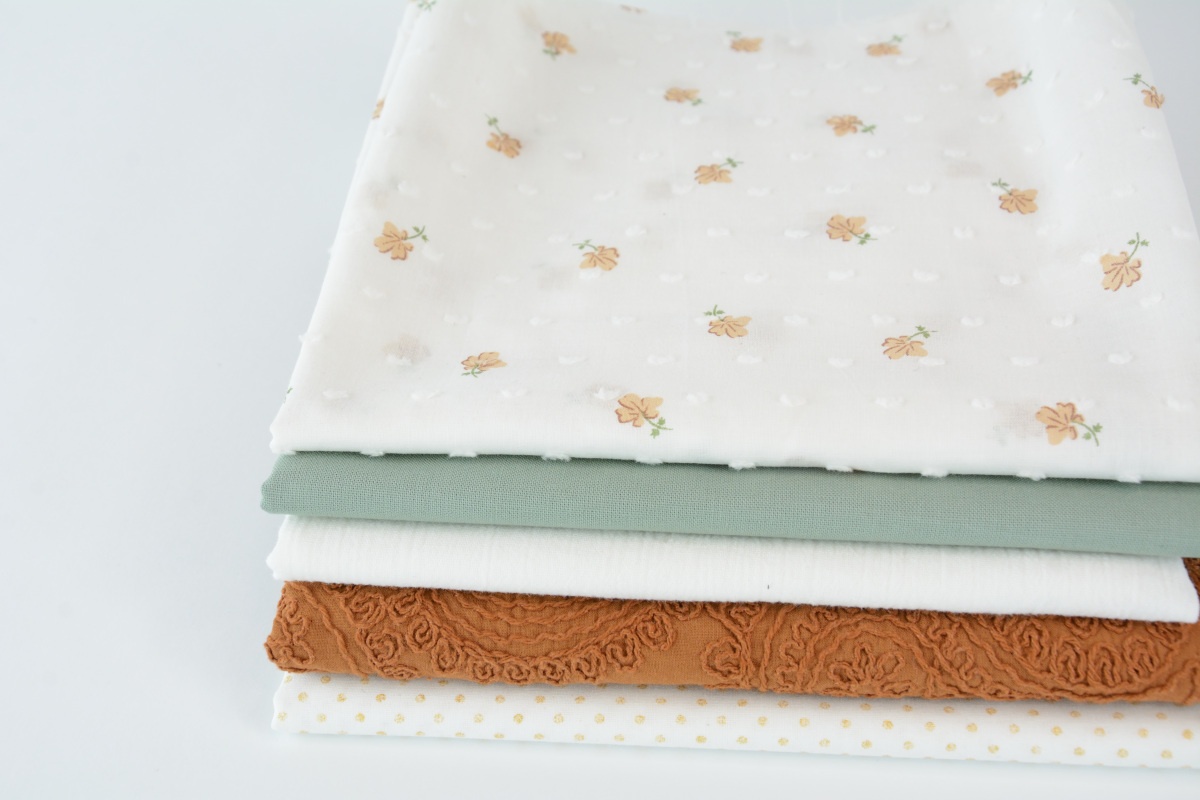 Zestaw 5 szt. tkanin/dzianin widocznych na zdjęciu.