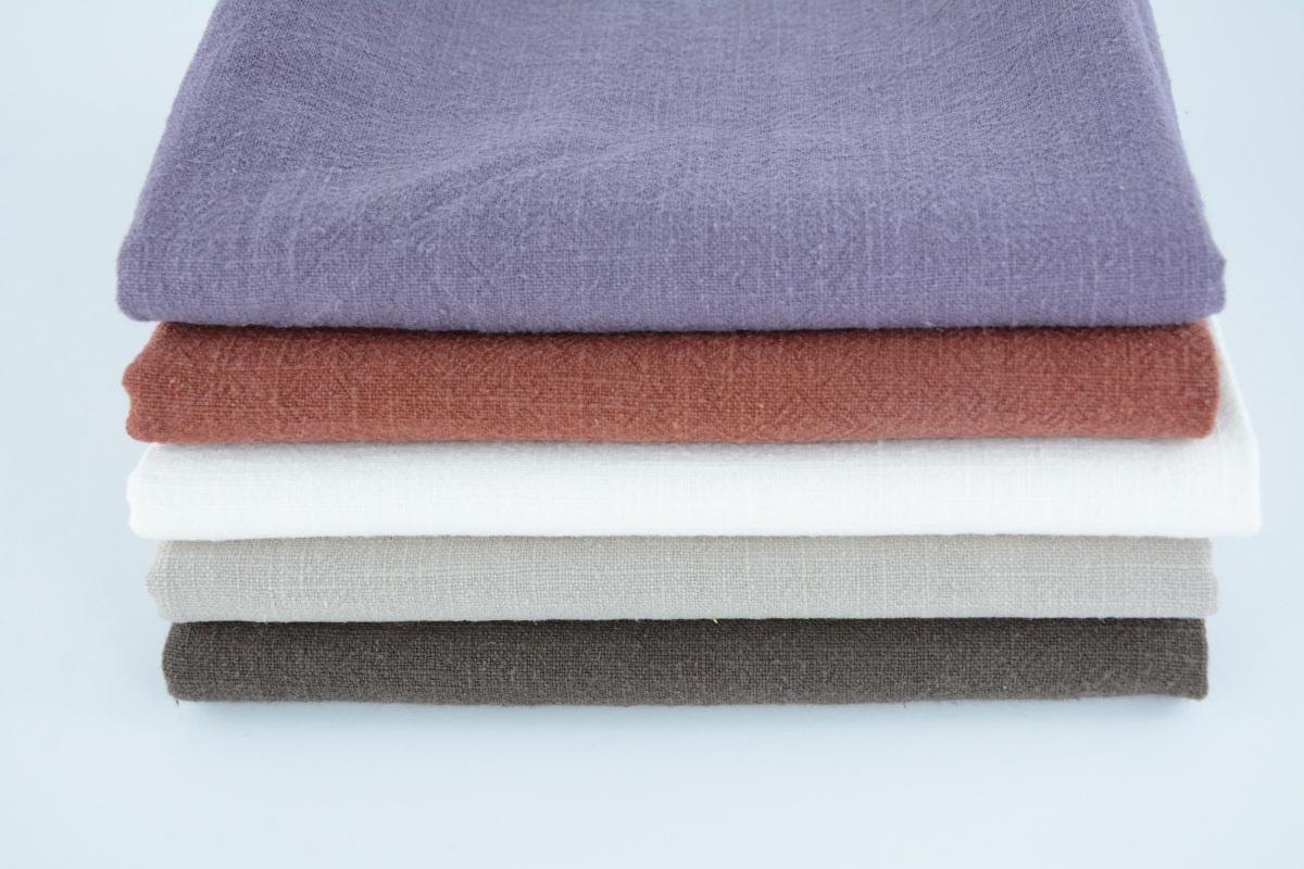 Zestaw 5 sztuk tkanin lnianych widocznych na zdjęciu.