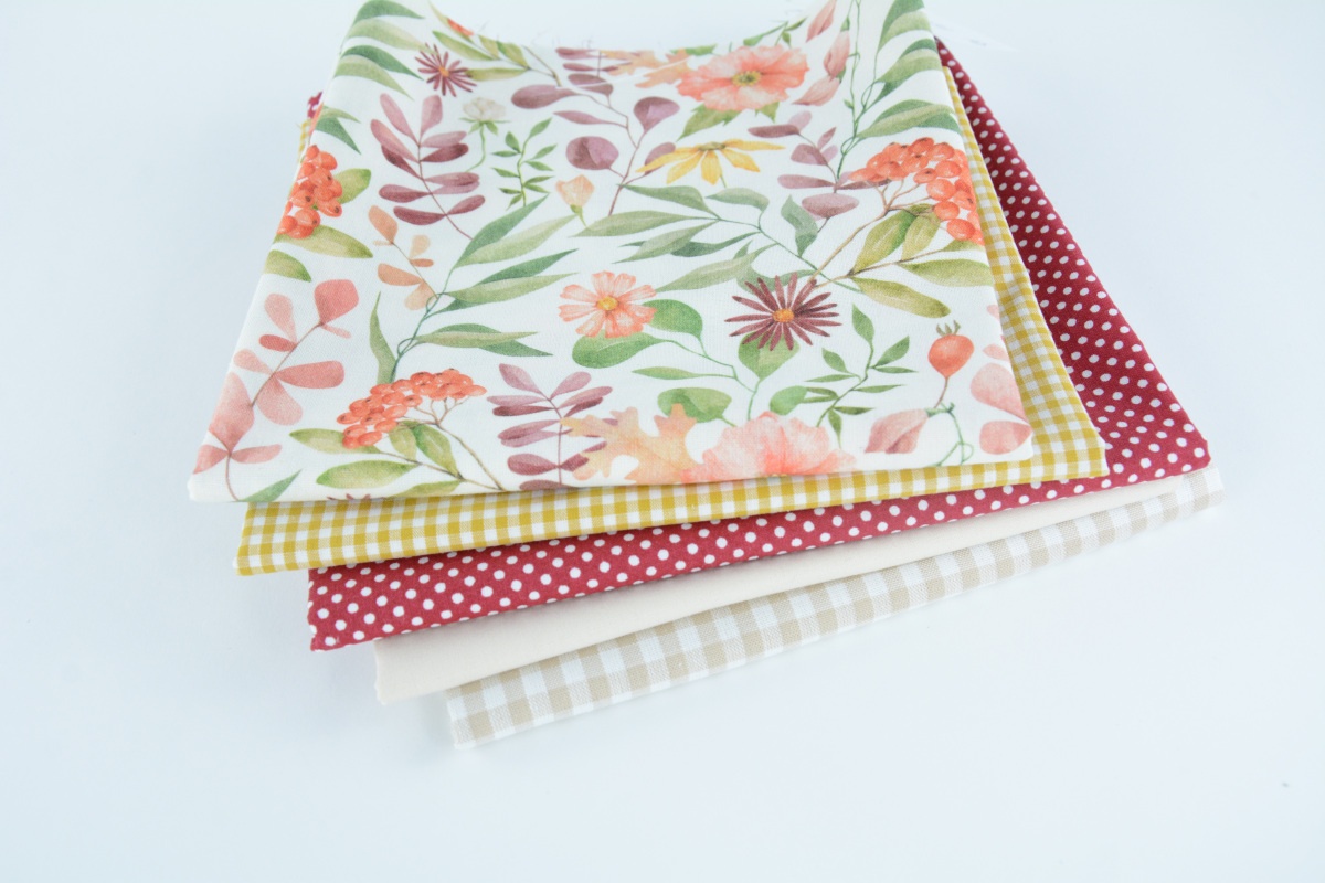 Zestaw 5 szt. tkanin/dzianin widocznych na zdjęciu.