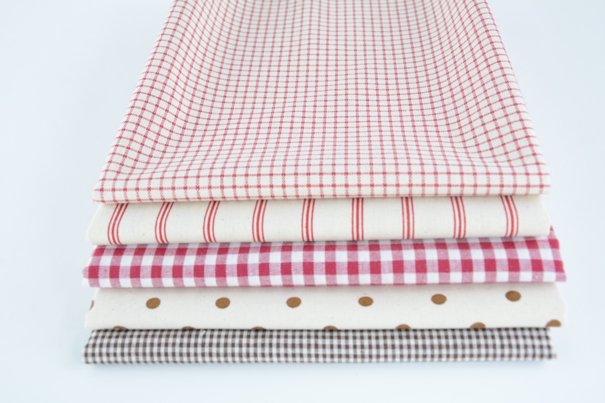 Zestaw 5 sztuk tkanin/dzianin widocznych na zdjęciu.