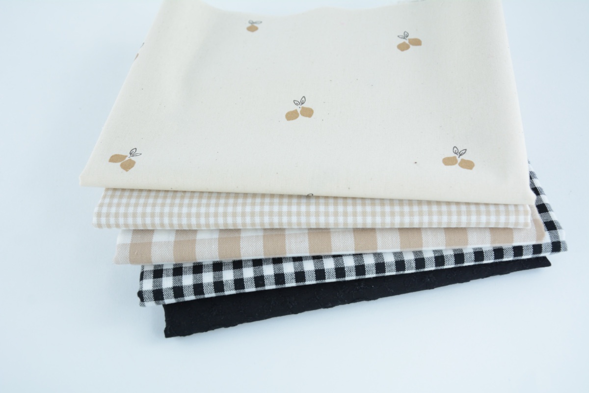 Zestaw 5 sztuk tkanin/dzianin widocznych na zdjęciu.